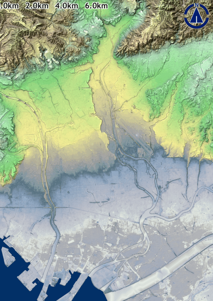 12万前は伊丹は浅い海であったが、武庫川と猪名川に運ばれた土砂が堆積し大地が作られた。
