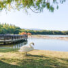 奥に見えている湖は、昆陽池でしょうか?それとも、雲を書いているのを省略して、水に見えているのかもしれません。